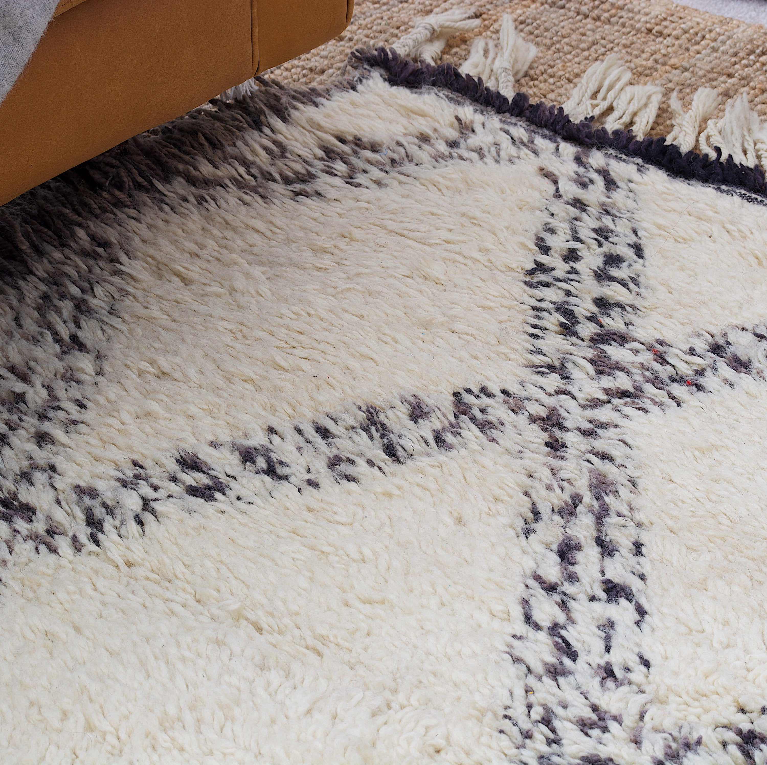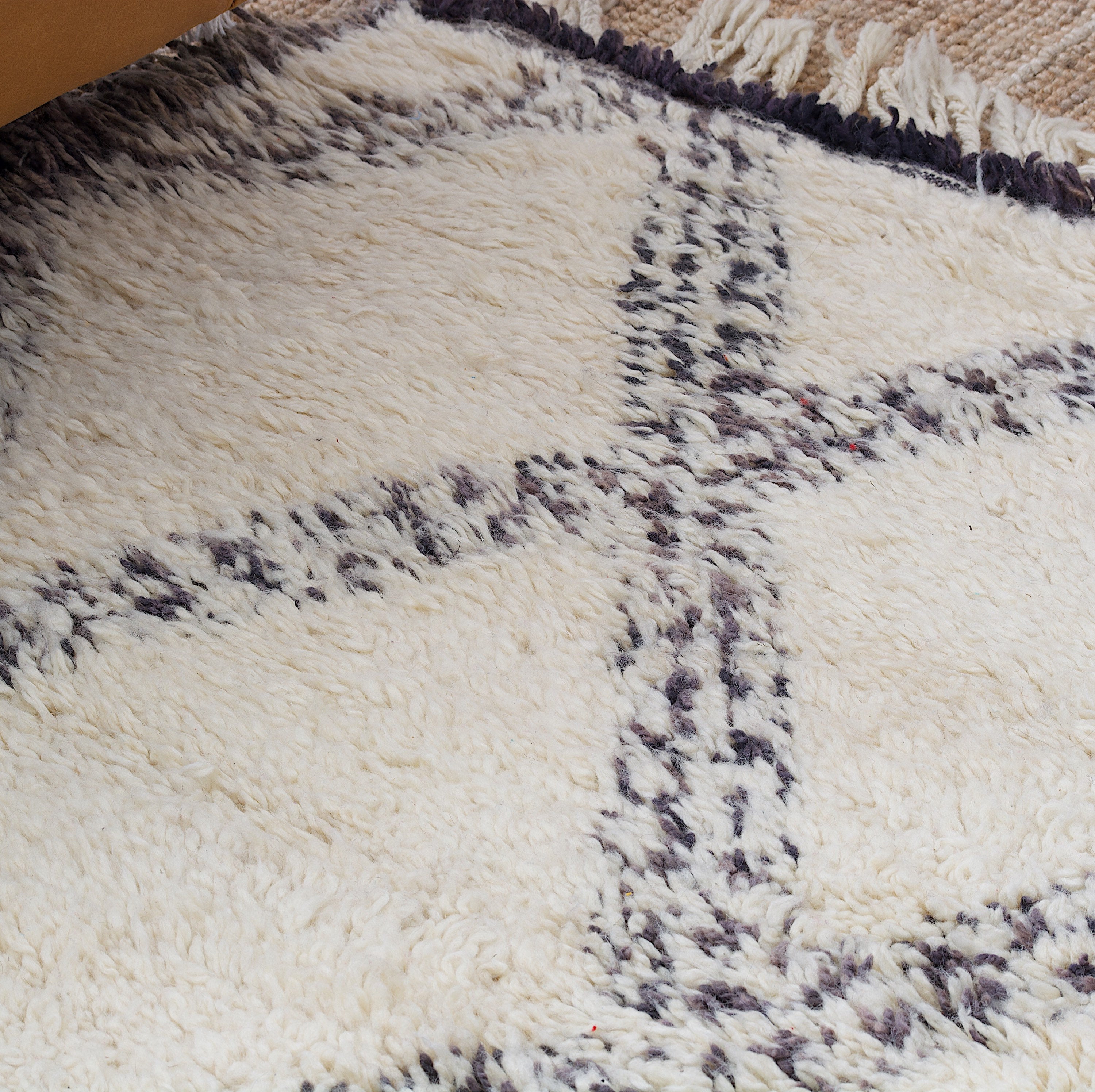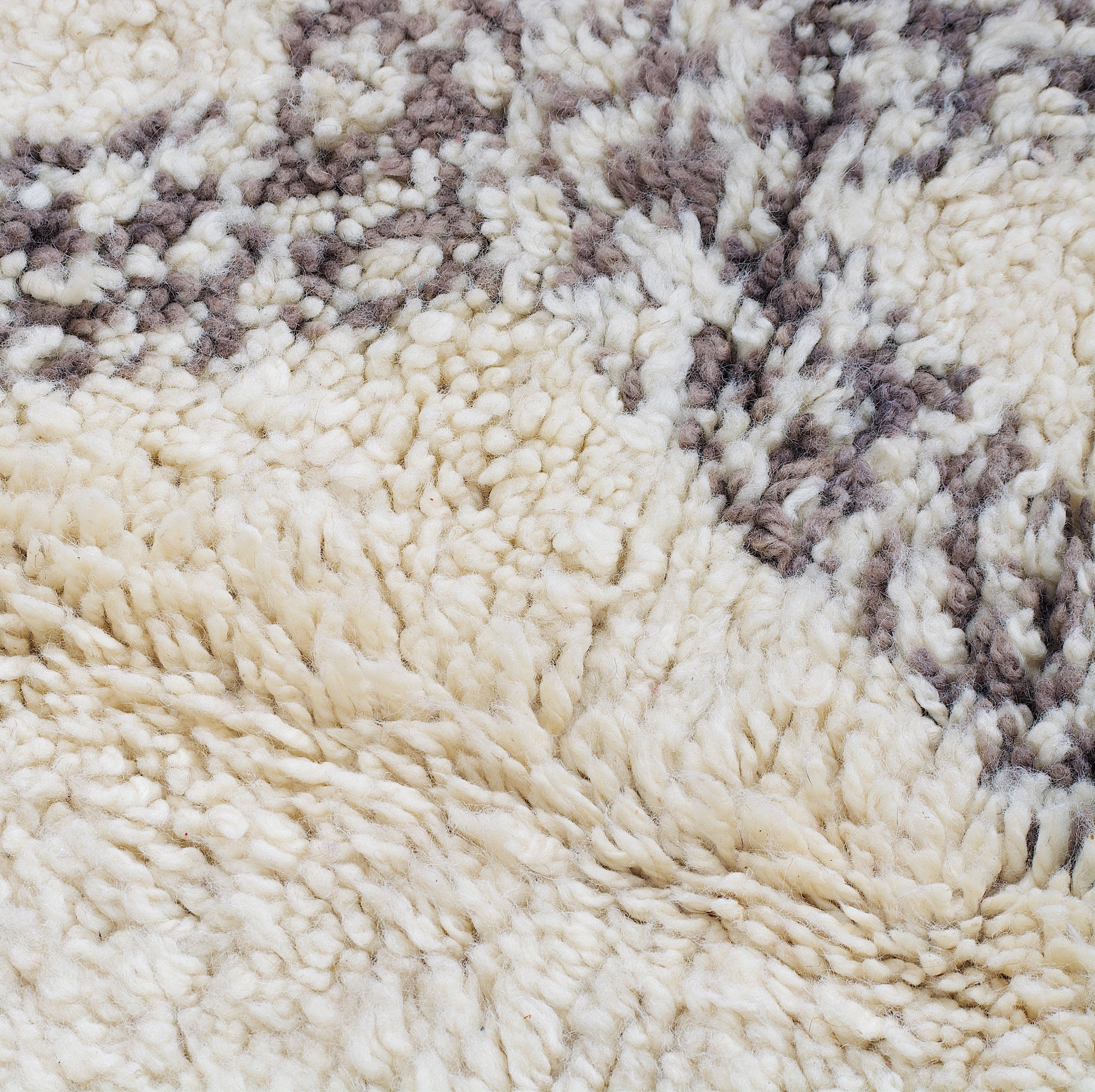 Most ancient beni Ourain designs are woven with natural black or dark brown wool into the cream base.